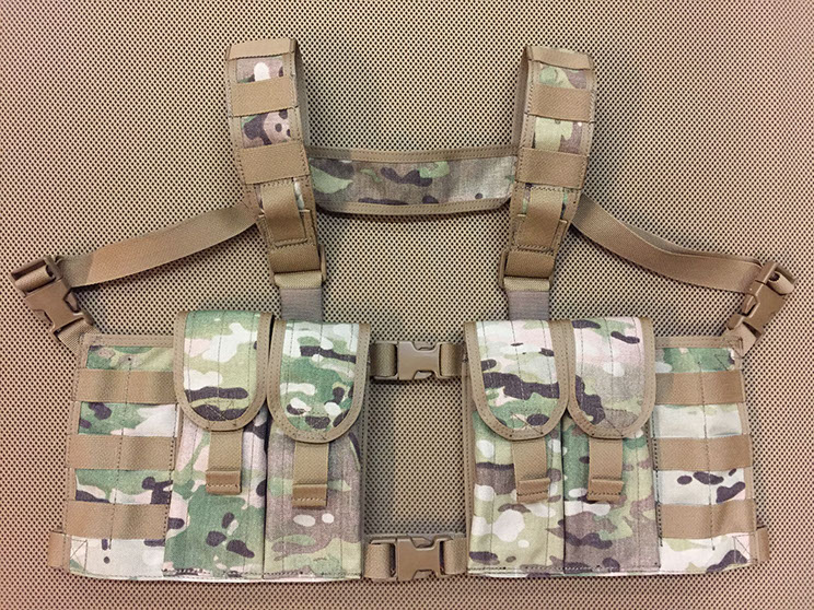 This rig is the next step in our chest rig evolution. It combines features from both chest rigs and load bearing vests into one rig optimized for our needs. Throw in the tuck tab design, and we think you'll agree, this is the best split front rig out there.